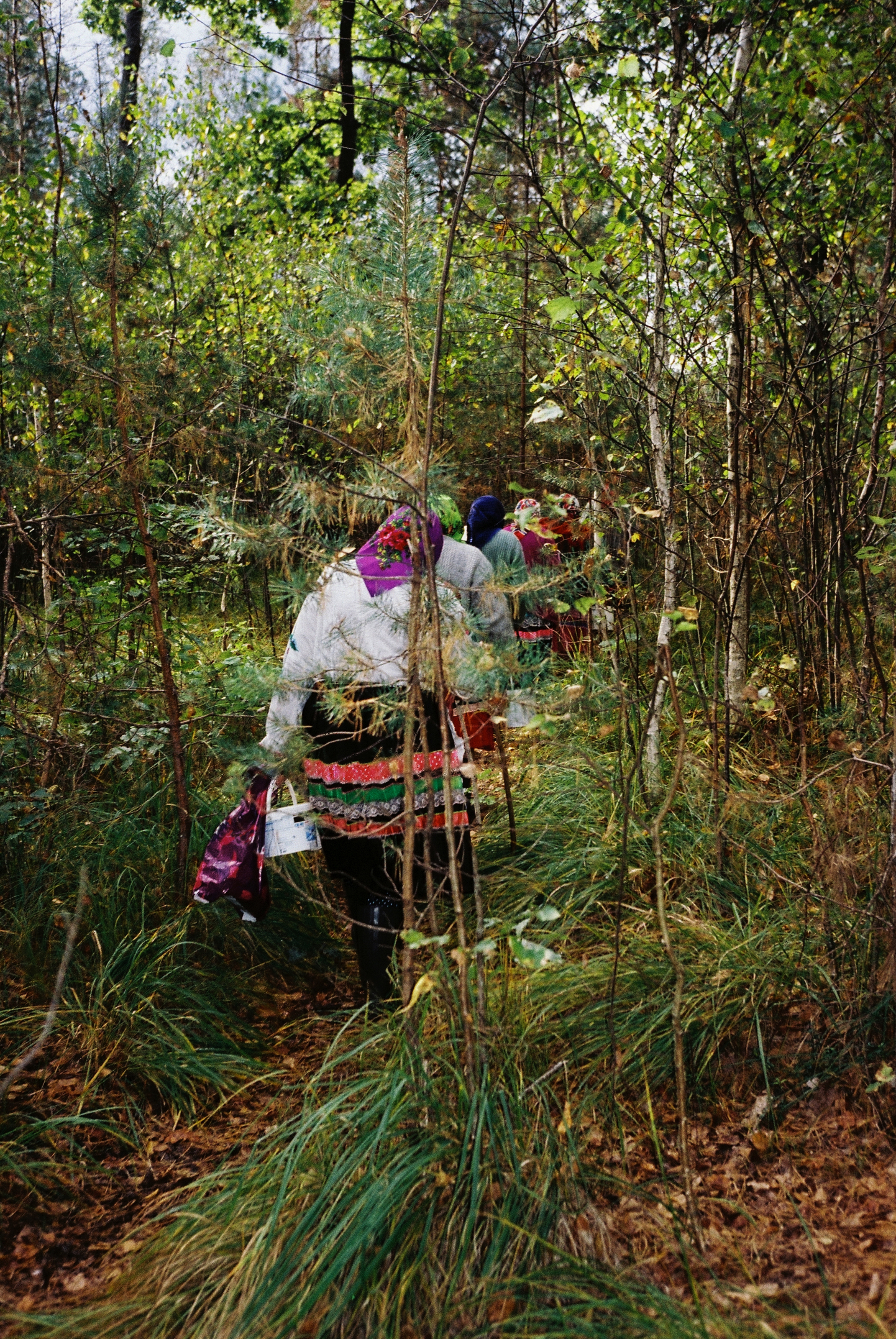 Пасля таго, як я размаўляла з Мальвінаю, мы паехалі з ёю ў журавіны. Да лакацыі падбіраліся на машыне, бо гэта пара кіламетраў ад вёскі, а Мальвіне складана хадзіць, яна перанесла анкалогію. І вось мы едзем, а яна кажа: «Божа, я так радуюся, што мы едзім у журавіны, я так люблю збіраць журавіны». Для яе гэта сапраўднае жыццё: лес, вада, балоты – яе натуральнае асяроддзе, частка свядомасці. І потым дадае: «Я сяджу дома, а мая душа блукае па лесе». Мне так запала гэтая фраза, настолькі ёмісты вобраз, і такое нешта кранальнае ў гэтым ёсць, і глыбокае, і моцнае.