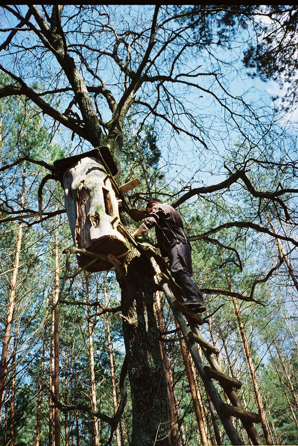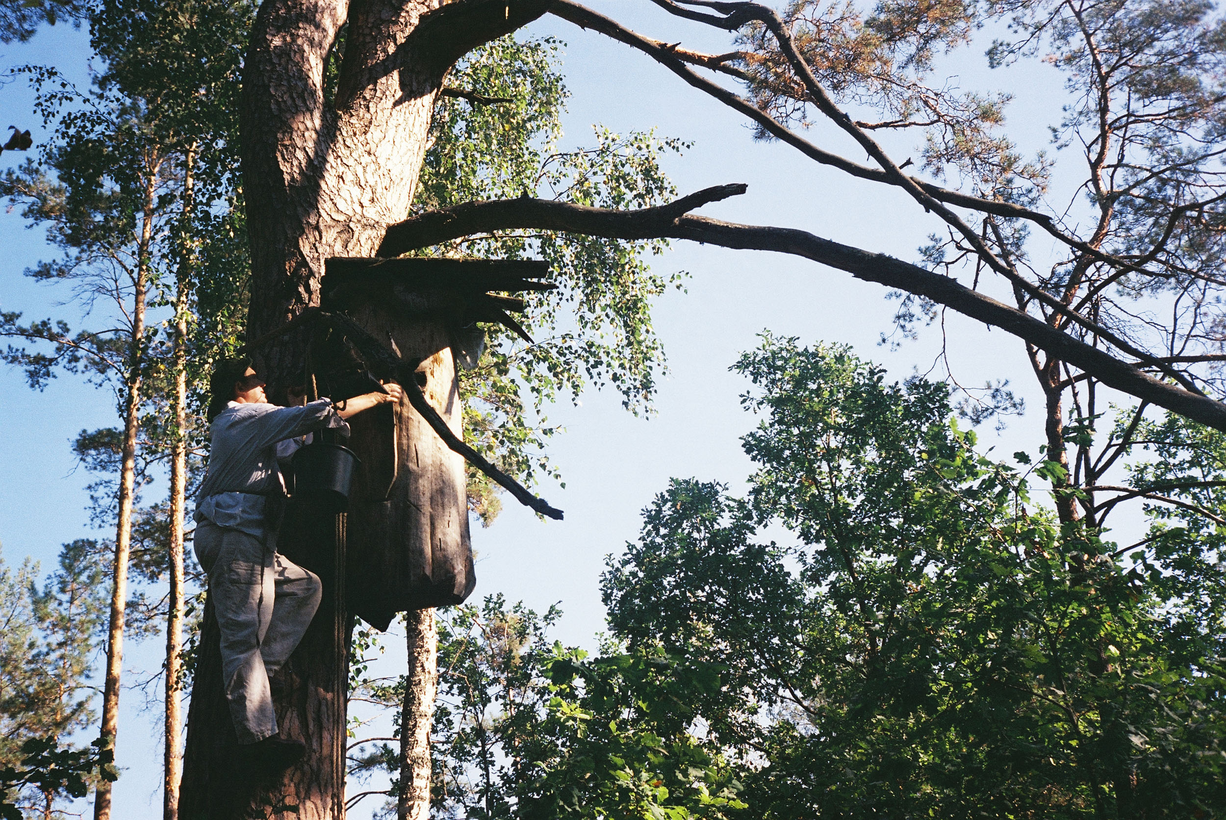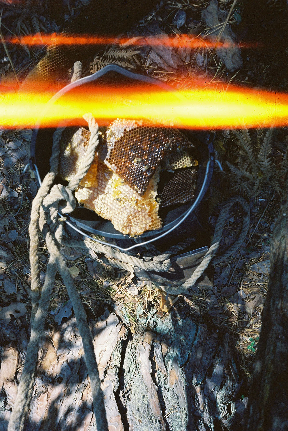У Цераблічах я была ў розныя поры года і дакраналася да розных этапаў цыклу, звязанага з пчоламі. Гэта таксама асаблівая для мяне гісторыя, таму што дзікае пчалярства – унікальная з’ява для Еўропы і ў цэлым для свету. Міша браў мяне з сабою ў лес, і мы адпраўляліся з ім да розных борцяў. Я магла назіраць усе працэсы, звязаныя з іх праверкай пасля зімы, падрыхтоўкай да новага сезону, прафілактычным аглядам, мёдазборам, ён нават падымаўся з дапамогаю лязіва метраў на дзесяць-пятнаццаць на дрэва – дубовыя калоды высока падымаюць.