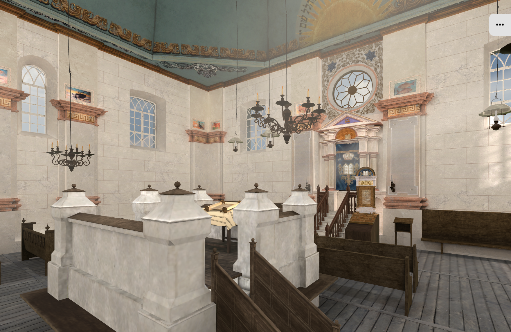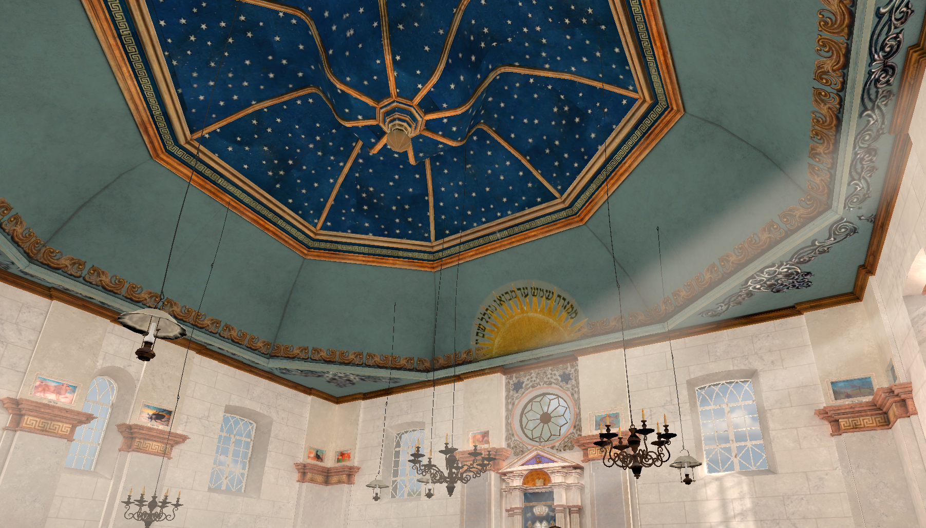 VR-рэканструкцыя створана на аснове гэтага адзінага здымка, архіўных матэрыялаў і аналагічных інтэр'ераў сінагог мясцовасці. Купальныя роспісы, задыякальны цыкл і сонечны матыў над каўчэгам Торы былі ўручную адноўлены па слядах пігмента і супастаўных крыніцах і затым перанесены ў 3D-фармат.