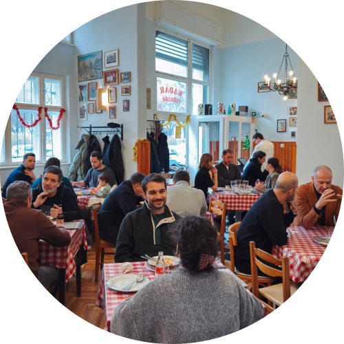 Zsír Fővárosi Kulipintyó (Instagram / Google Maps – Kiss József u. 16) – скрытая андеграундная жемчужина. Этот бар открыл Коуд Кьяртан, бывший уличный музыкант из Америки, еще в 2011 году. Каждый вечер это крошечное подвальное пространство превращается в музыкальный балаган – это место встречи для любителей мировой и народной музыки. Здесь часто выступают те, кому редко дают слово на больших сценах. Здесь все пронизано ностальгией: клетчатый пол, фанерные панели, винтажный декор.