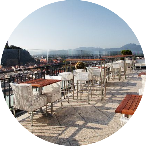 B Bar InterContinental (Сайт / Instagram / Slovenska cesta 59 – Google Maps) – отличные коктейли с красивой подачей на крыше отеля. Идеальное место, чтобы посмотреть на Любляну с высоты, если душа просит элегантности и роскоши. Цены, кстати, вполне адекватные.