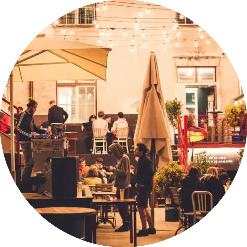 Еще одно сердце ночной жизни в Любляне – пространство Metelkova (см. раздел «Культурная программа – Альтернатива»). Это место, где ты получишь самое полное представление о ночной андеграундной культуре города, да еще и с недорогими напитками. Приходи сюда около полуночи и выбирай ивент на свой вкус. Стоит проверить афишу в Gala Hala (Сайт / Instagram / Masarykova cesta 24 – Google Maps): сюда приходят за музыкой, а не просто потусоваться – нередко здесь годный хип-хоп, электро-даб, фанк. В теплое время года открывают летнюю сцену и сад.