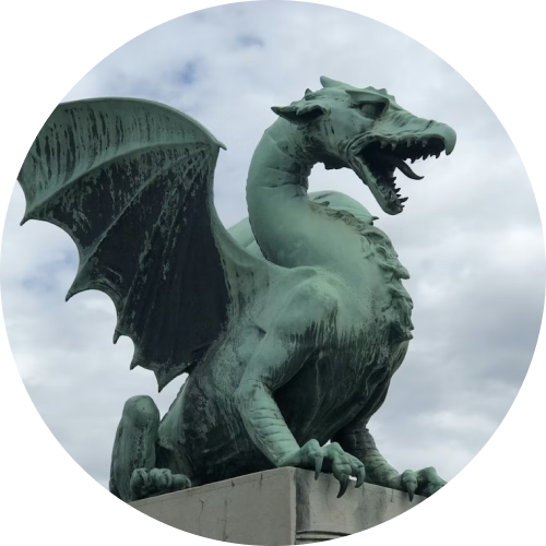 Прямо от крытого рынка переходи реку по мосту мясников (Mesarski most / Google Maps), не забудь посмотреть на воду через стеклянные панели. Тут же найдешь необычные скульптуры: изгнанные из рая Адам и Ева, чуть дальше Прометей, выпотрошенный в наказание за то, что дал человечеству знание огня. Прогуляйся чуть подальше до Драконьего моста (Zmajski most / Google Maps) – еще одной визитной карточки города. Если не сфоткаешься здесь, то, считай, и не был(-а) в Любляне. Местная легенда гласит, что когда по мосту проходит девственница, драконы виляют хвостом. Правда, виляющих хвостов так никто и не видел.