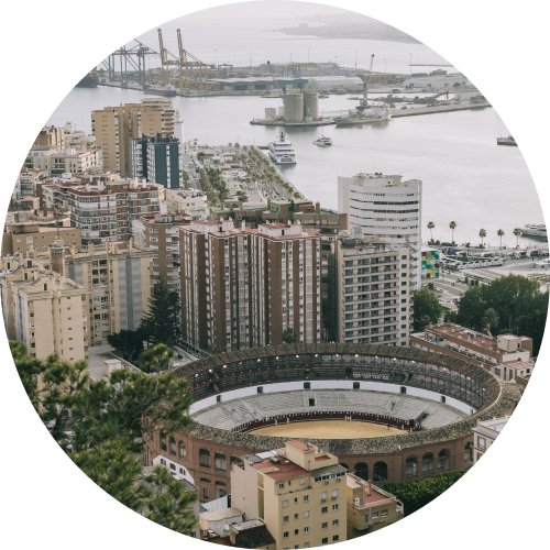 К слову, чтобы увидеть тот самый открыточный вид на порт Малаги и арену La Malagueta (см. ниже) необязательно идти в замок, можно забраться на обзорную площадку Mirador de Gibralfaro (Google Maps) абсолютно бесплатно. Если нет настроения отправляться в обстоятельный хайк, знай, что до смотровой площадки на высокой горе можно доехать из центра города на автобусе 35.