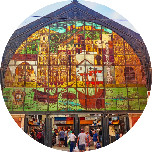 Гуляя по центру города, ты не сможешь пропустить главный городской рынок – Mercado Central de Atarazanas (Сайт / Google Maps – calle Atarazanas 10) с роскошным старинным витражом с изображением Малаги. С противоположной стороны здания обрати внимание также на суровые ворота: хоть современное здание рынка и построено в 1870-х, монументальная арка в неомавританском стиле сохранилась от оригинальной постройки с XV века. На центральном рынке действительно красиво, и тут же можно перекусить в одном из баров, но если хочется менее туристического опыта, прогуляйся до Mercado de Salamanca (Google Maps – calle San Bartolomé 1): это рынок поменьше построен в неоарабском стиле и не такой популярный, а значит, цены здесь тоже будут ниже, при этом по визуальным признакам и культурной ценности он абсолютно не уступает. Подробнее о гастрономическом предложении – в разделе «Еда» (доступен в полной версии гайда).