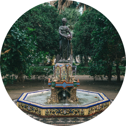 Спрятаться от летнего зноя или просто перевести дух после активной прогулки по Старому городе можно в зеленом парке Parque de Málaga (Google Maps) с фонтанами, тенистыми аллеями и крикливыми попугаями. Атмосфера здесь удивительно умиротворенная: так и не скажешь, что парк с обеих сторон обрамлен загруженными городскими артериями.