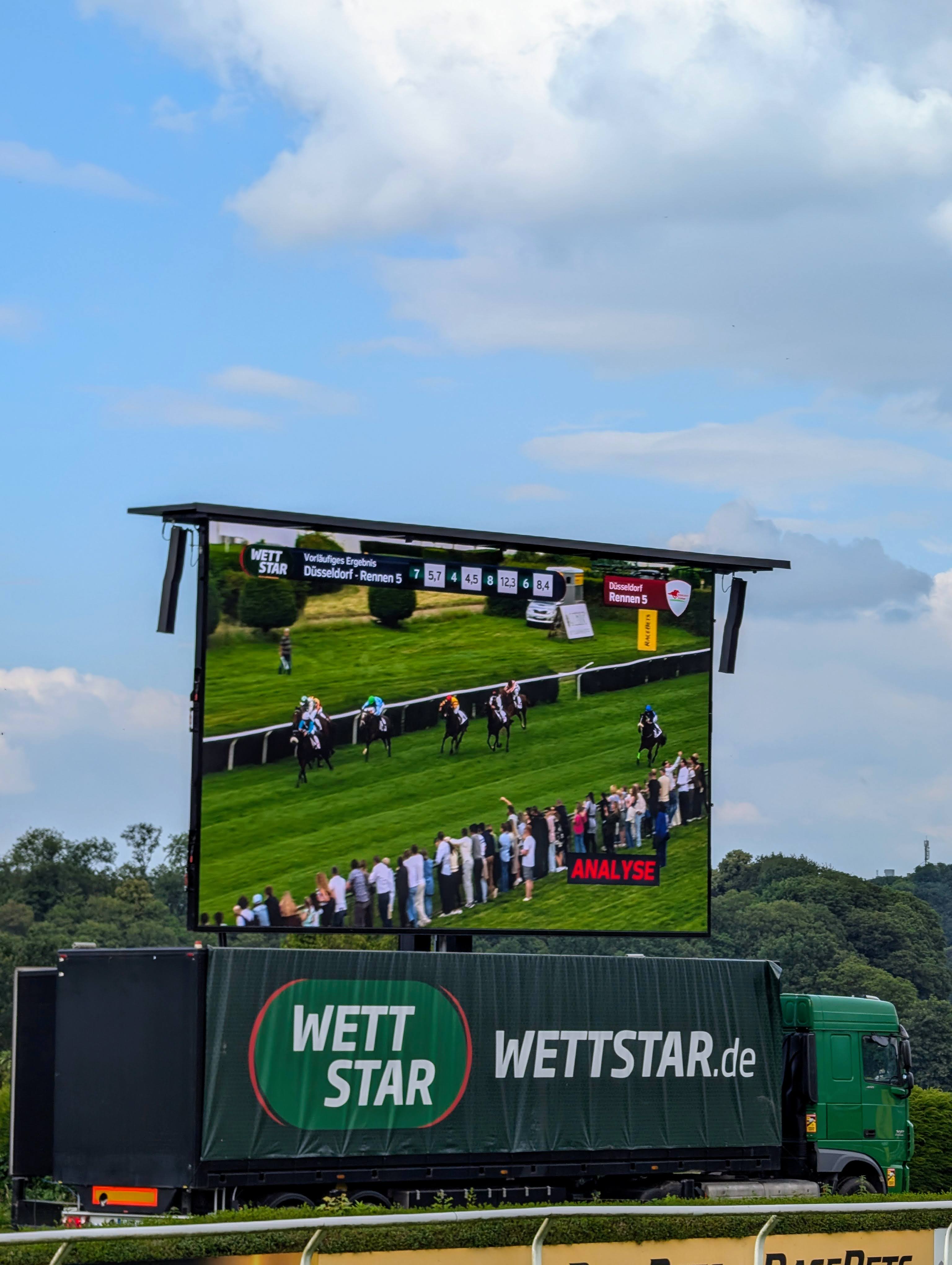 Если обзор на треки закрыт, следить за скачками можно на большом экране с трансляцией (там же публикуют и результаты по окончании круга).
