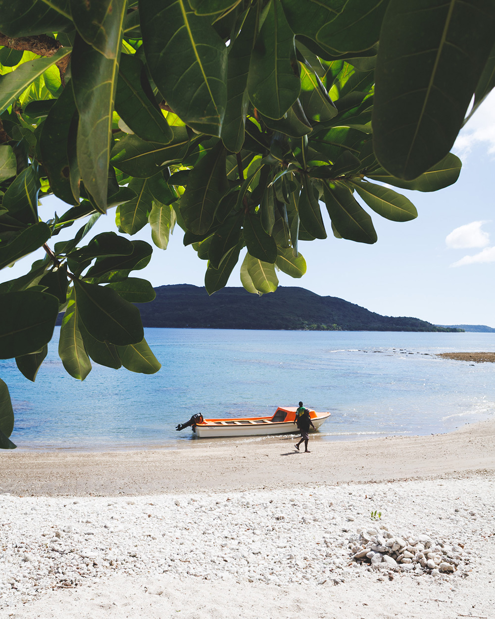 За 10-дневную поездку нам удалось побывать на пяти островах, расположенных на расстоянии лодочной переправы от острова Эфате, где находится столица Порт-Вила. На острова, принадлежащие племенам, таких как Pele и Lelepa, добраться проще всего на лодке с частным трансфером или с экскурсией. Достаточно спросить в отеле, и за тебя договорятся с кем-то из местных или сделают бронирование на нужный день. На маленькие острова-резорты, вроде Hideaway Island (Google Maps), Iririki (Google Maps) или Erakor (Google Maps) лучше всего ехать самостоятельно. В Порт-Вила множество причалов, у каждого острова – свой причал и своя лодка-шаттл. Обычно лодки бесплатные, но чаще всего нужно заплатить за вход на остров – около 1000–1500 вату (около $ 8–12). До нужного причала можно доехать на такси, а можно воспользоваться особым видом общественного транспорта – маршруткой без маршрута. Просто становишься на нужной стороне улицы и поднимаешь руку, чтобы остановить первый белый мини-автобус. Говоришь водителю, куда тебе нужно, и он просто включает твою точку в маршрут. Стоит это 150 вату (1,2 USD) в пределах Порт-Вила и работает каким-то совершенно загадочным, но удивительно слаженным образом. Да, кстати, адресов в нашем понимании (с номерами домов) в Порт-Вила не существует – импровизируй на французском.
