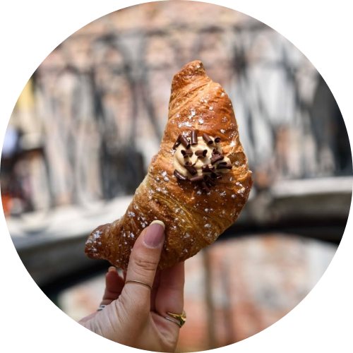 Если хочешь спокойно присесть за столиком (да еще и на живописной площади у канала), двигай в 1000 Coffee & Bakery (Instagram / Google Maps – Campo de la Maddalena). С утра тут можно взять какую-нибудь сладкую булочку, а в обед – добротный кусок пиццы.