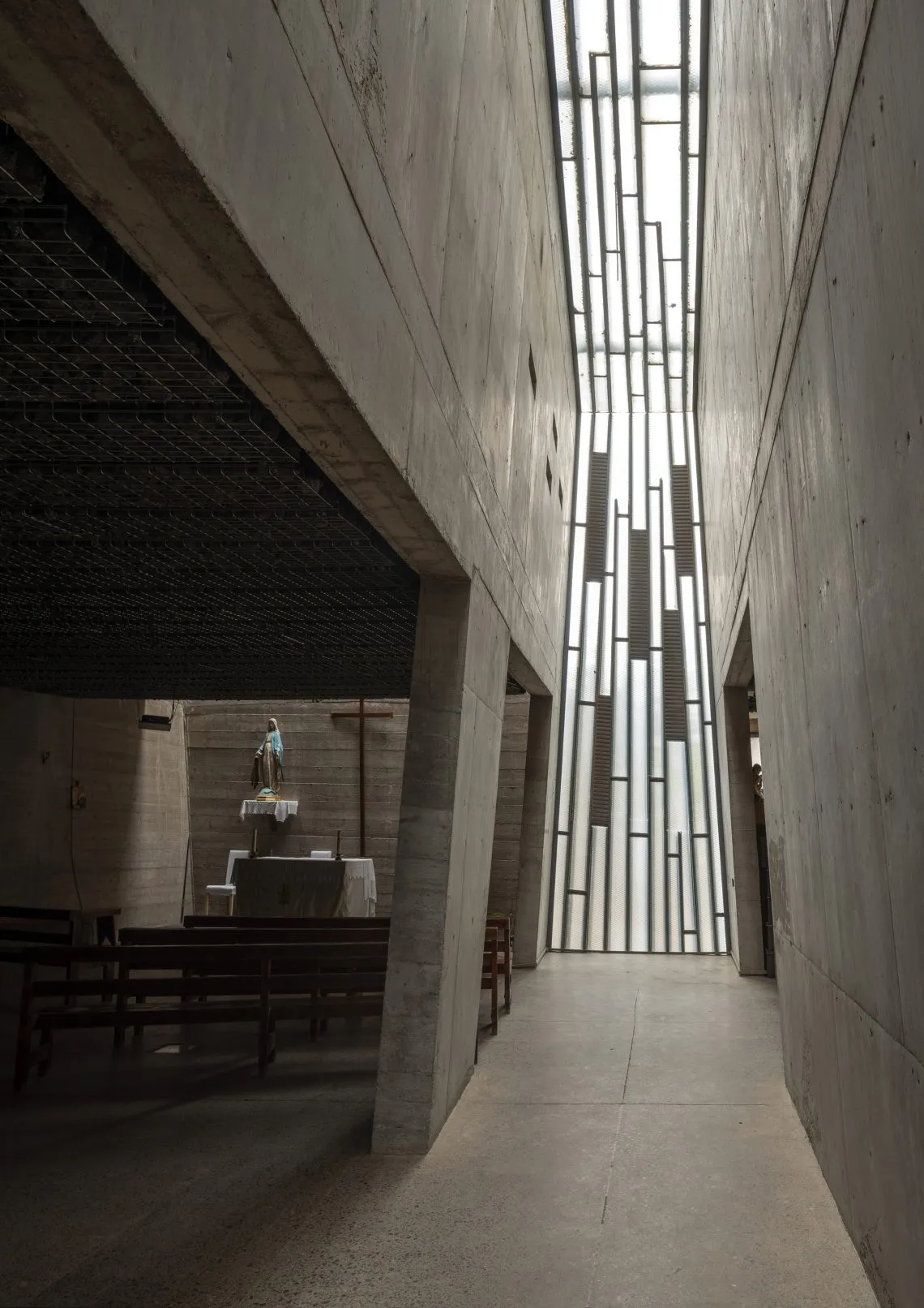 Материальная палитра часовни остается минималистичной, чтобы подчеркнуть взаимодействие узора, формы и света.