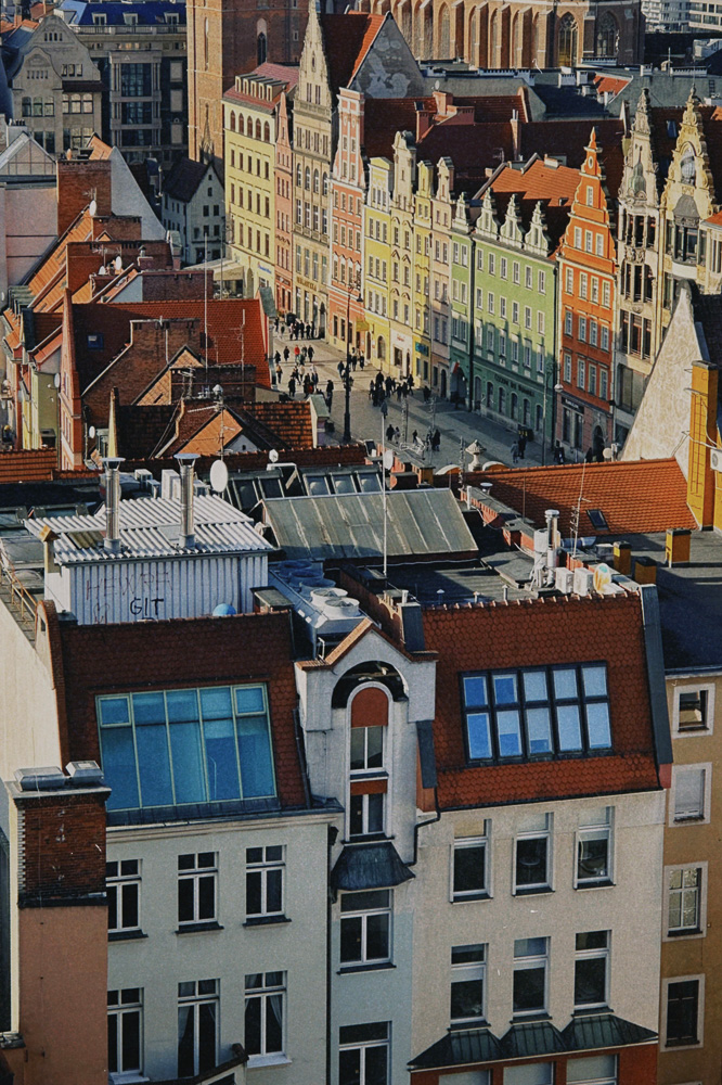 Посмотреть на город свысока можно минимум с четырех точек! Классический вид на рыжие черепичные крыши открывается с костела Святой Марии Магдалины (Katedra św. Marii Magdaleny – Most Pokutnic / Сайт / Google Maps – Szewska 10). Чтобы насладиться панорамой, нужно будет преодолеть больше 200 ступеней и оплатить 18 PLN (€ 4,2) в кассе.