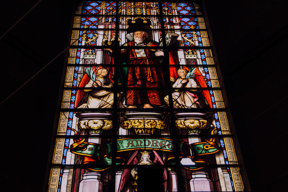 Идем верх по улице, наслаждаясь старыми зданиями и атмосферой города к собору Св. Джайлса (High Street/Royal mile). Можно зайти внутрь. Тебе определенно понравится средневековая архитектура и мозаика на окнах, а также выставки, которые периодически здесь проходят. Вход бесплатный, но предлагается добровольное (иногда и морально принудительное) пожертвование в £3.