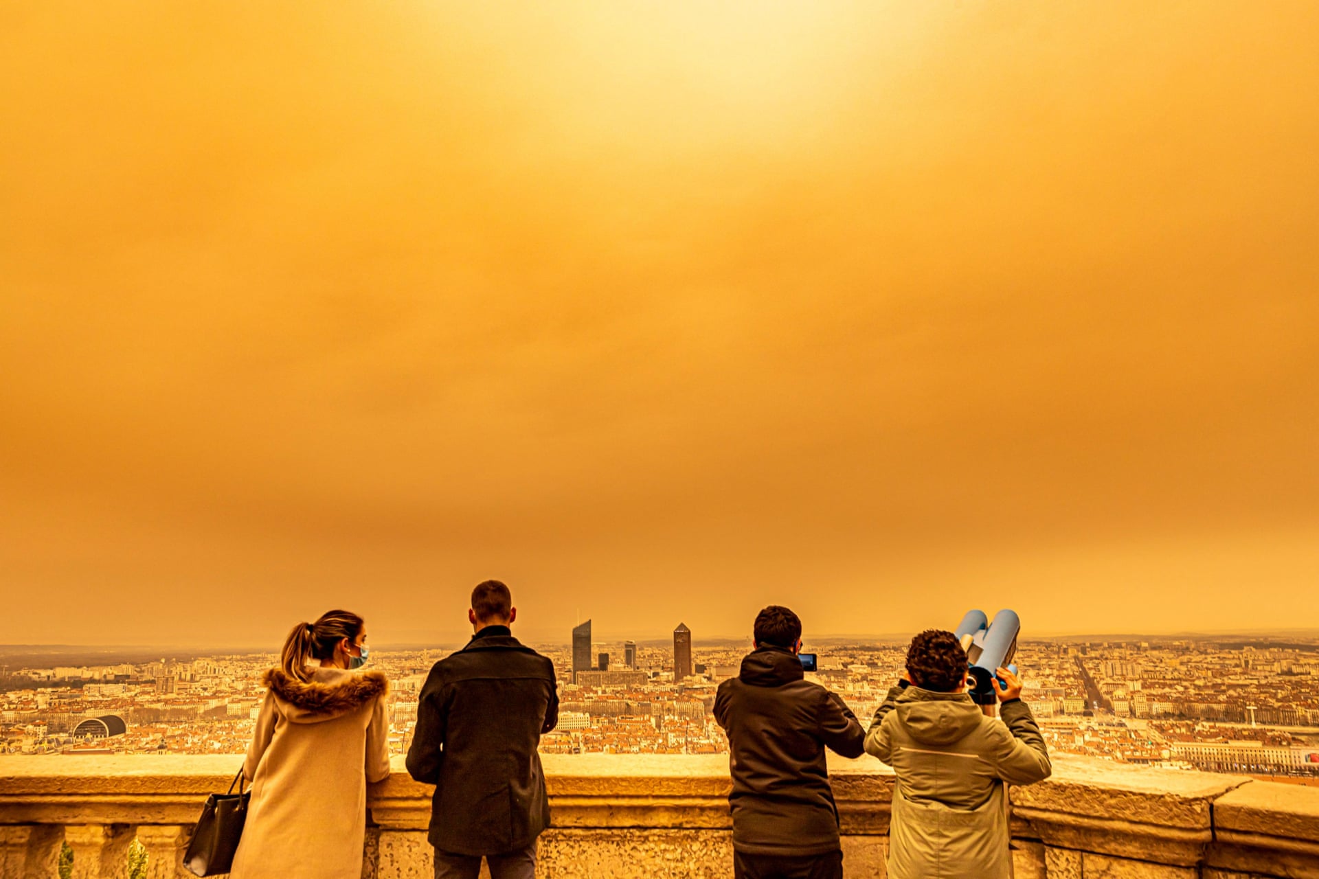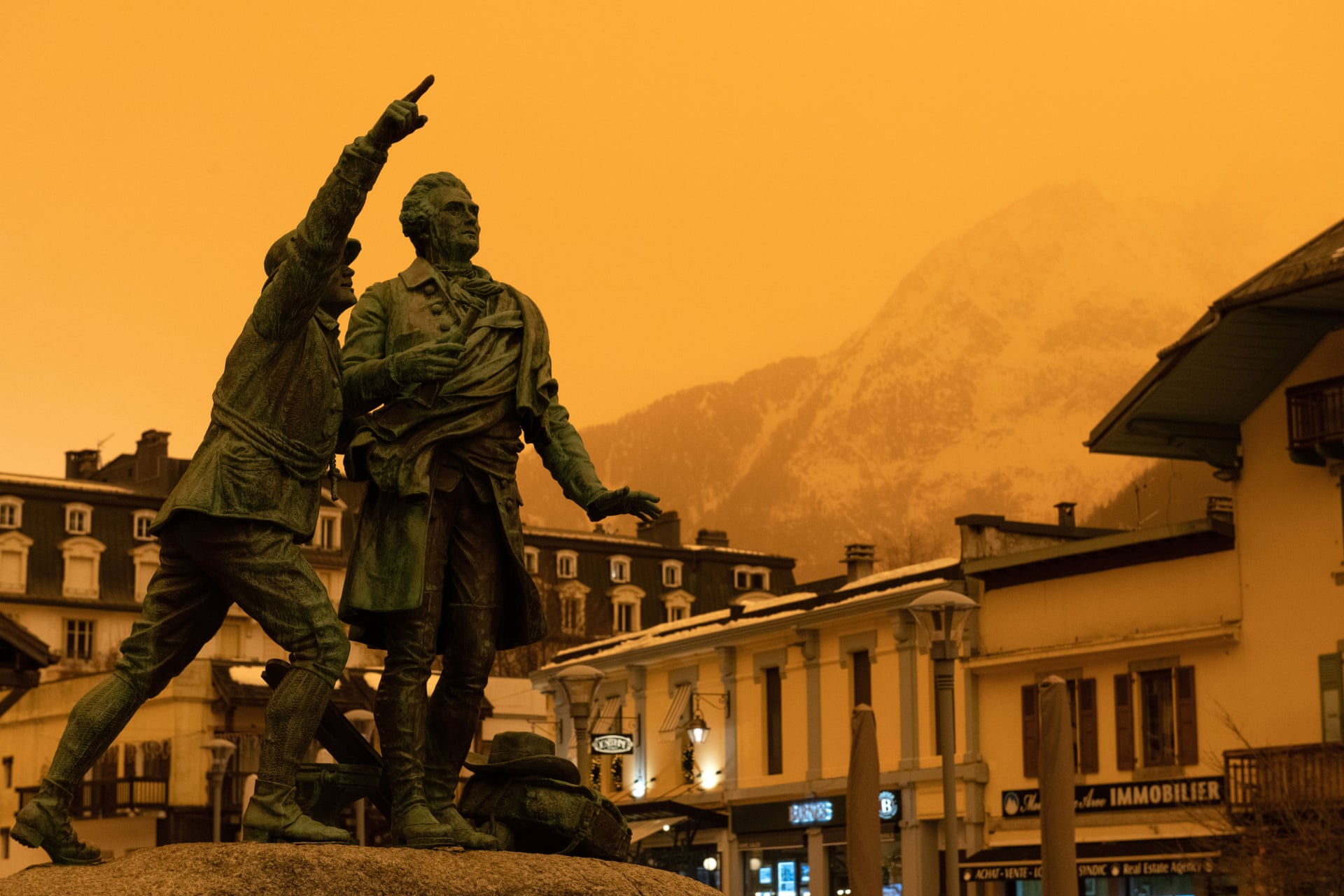 Сильный жаркий ветер принес в Европу большое количество мелкого песка и пыли из Сахары. Фотографии городов в необычных оттенках показали жители Франции, Швейцарии, Греции, Кипра, Андорры и других стран.