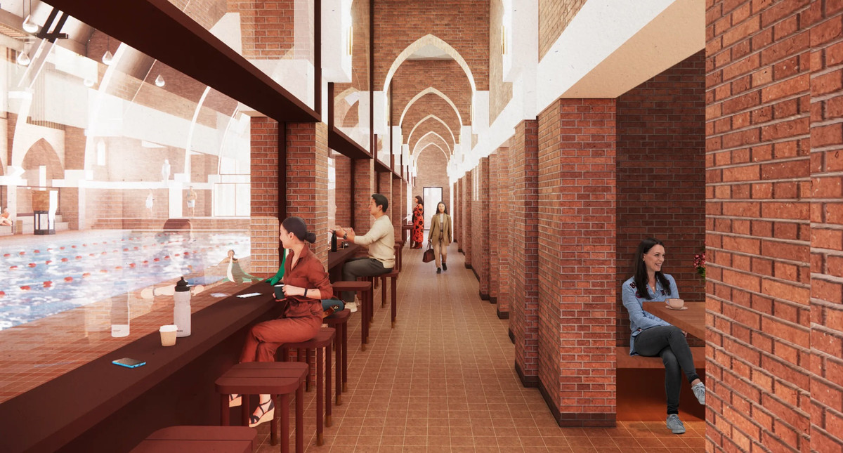 Главной задачей архитекторов является защита старого дерева, витражей и других элементов от влажности. Чтобы решить эту проблему, MVRDV и Zecc Architecten установят стеклянные стены вокруг бассейна и изолируют крышу здания.