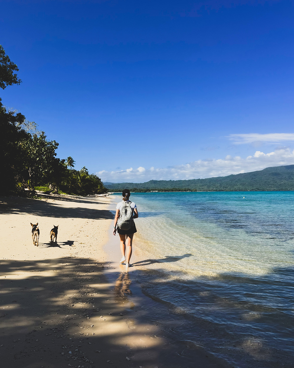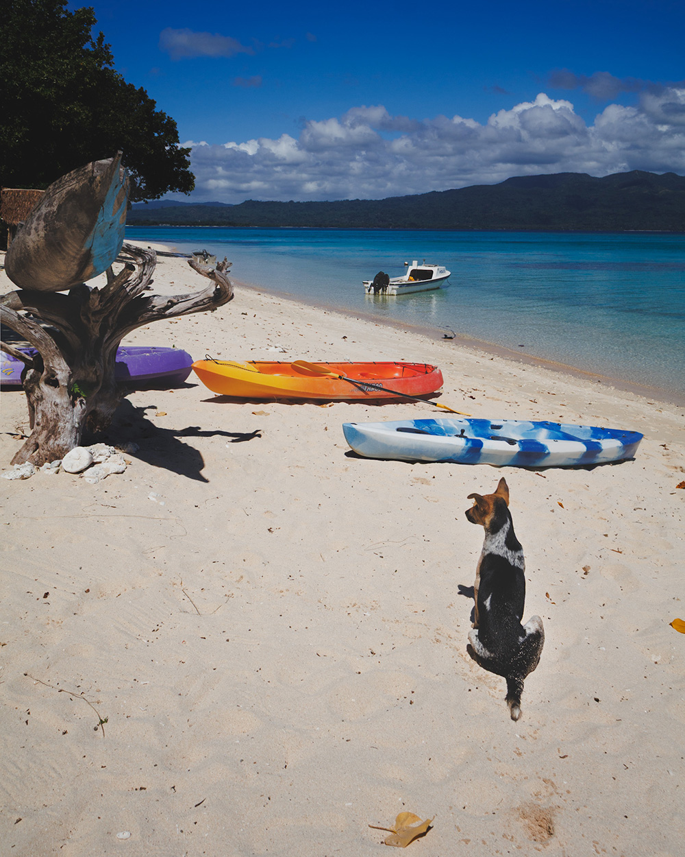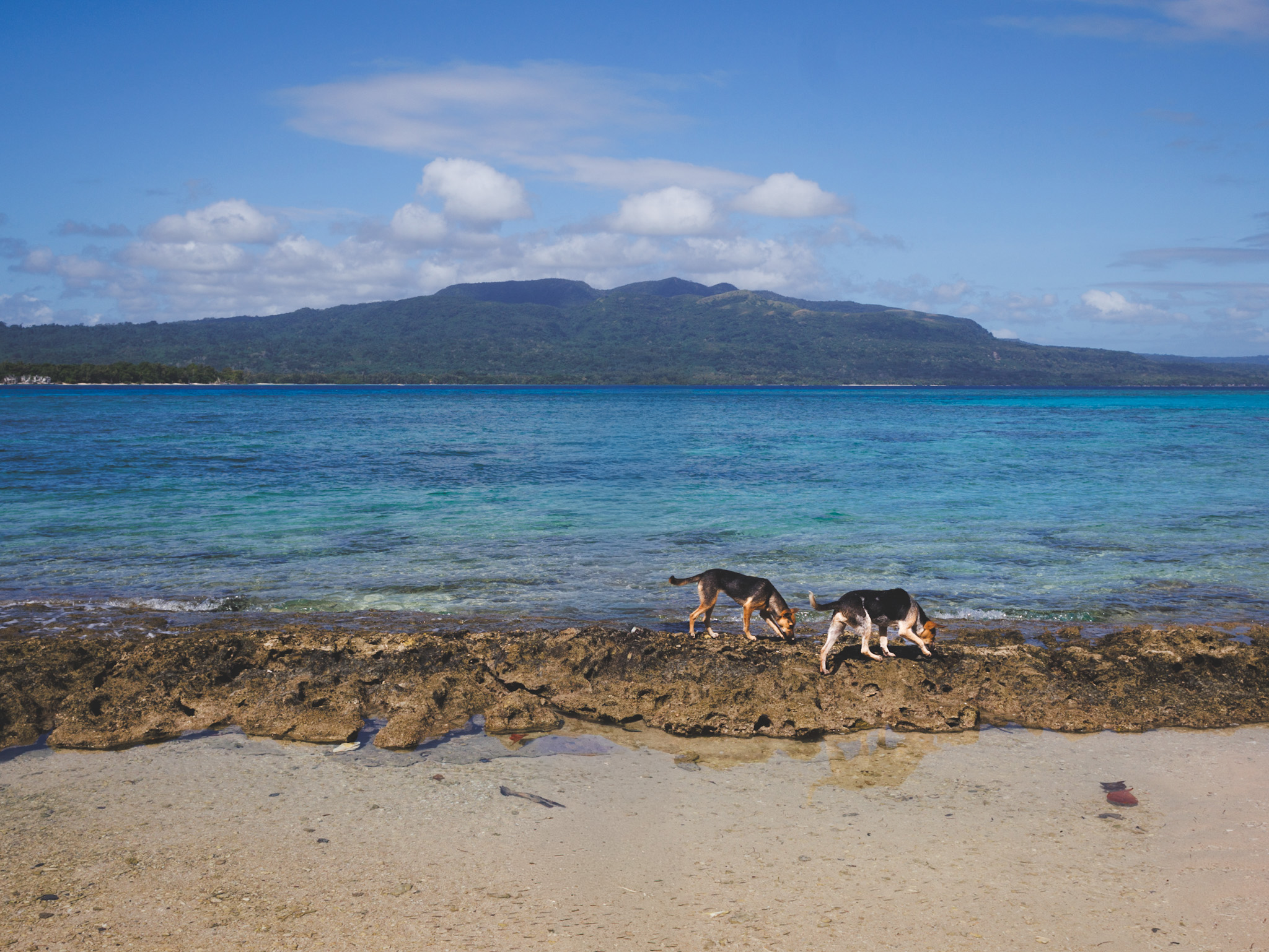 Прямо с лодки нас встречают две островные собаки, которые сразу же решают, что мы теперь – их стая, и сопровождают нас повсюду: наблюдают, как мы запускаем дрон, сторожат вещи, пока мы ныряем с маской на рифе. Как будто это не мы изучаем остров, а остров через них оценивает нас. Большего детокса от цивилизации, новостей, соцсетей и всего цифрового шума придумать просто невозможно. Здесь у человека есть все и нет ничего одновременно: нет магазинов, нет Netflix, нет дорог и доставок, но есть домашняя еда, и в твоем распоряжении теплое море с водой неправдоподобной прозрачности, пляжи, где не ступала нога застройщика, бесконечный горизонт, и кажется, – весь мир. Поначалу выглядит, что кроме нас, других туристов на острове и вовсе нет, и только позже за обедом встречаем семью из Австралии и путешественницу из Сингапура.