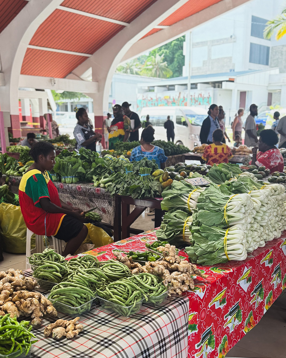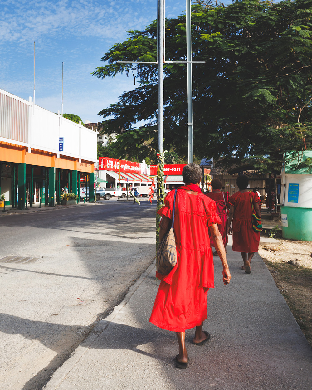 С утра же все идут на Mamas Market (Google Maps) в центре Порт-Вила. Mamas – так с уважением называют представительниц старшего поколения Ni-Vanuatu. На этом рынке никто навязчиво не предлагает товары и никто не торгуется – цены написаны фломастером на кусочках картона. Mamas чинно и расслабленно сидят за прилавками в своих широких ярких платьях, и их совсем не волнует, купим мы что-то или нет. Более того, мы несколько раз получаем неожиданные подарки – то браслет из кокосовой коры, который по мнению хозяйки прилавка подходил к моему платью, то пакетик сушеных бананов «на дорожку».