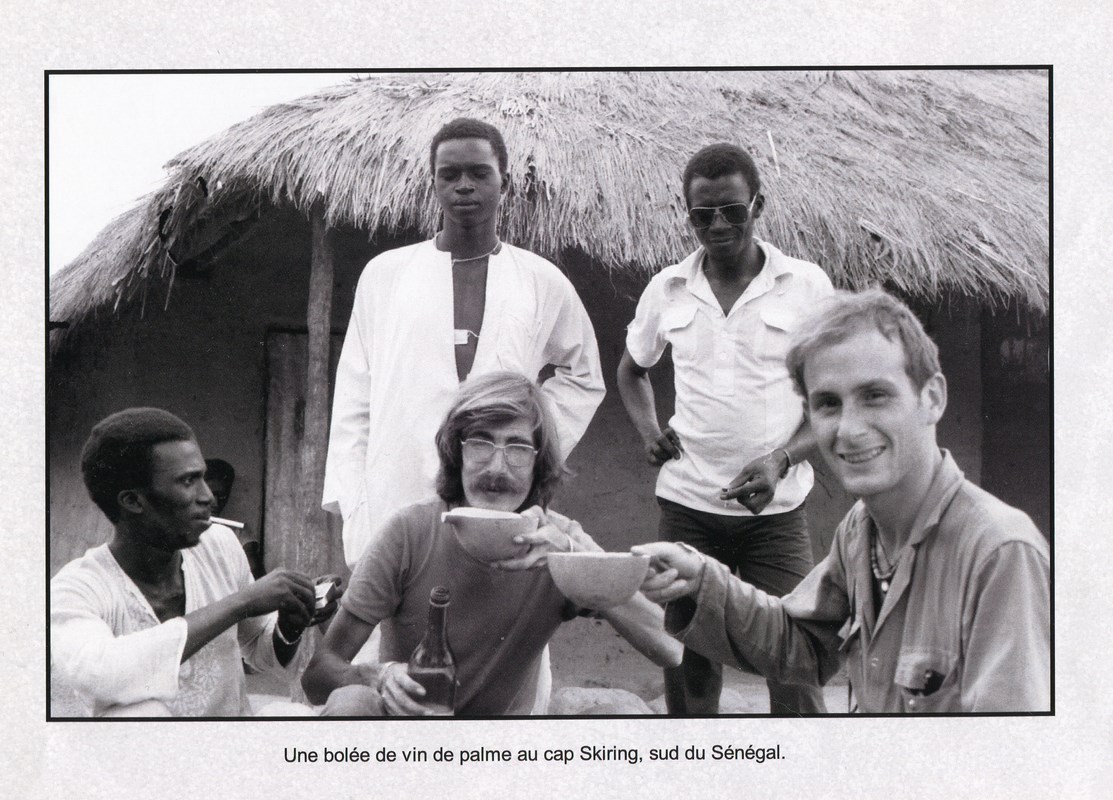 Одна из деревень, куда попали после – Кап Скиррен (Cap Skiring) в Сенегале. Теперь это поселение называют одним из самых популярных курортов страны. На фото жители угощают гостей пальмовым вином, сделанным здесь же. Белый посредине – Фрасуа, справа – Вилли. Недалеко от поселения находится аэропорт и океан. Вероятно, здесь и закончилось путешествие.